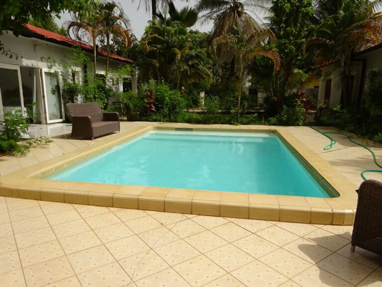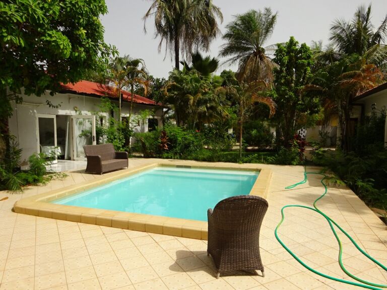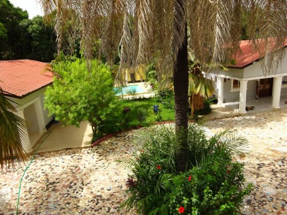 Private oasis dual residence compound with pool and garden.
